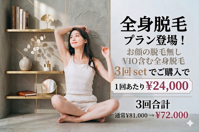 お体全部の脱毛(VIO含む)がこのお値段で!!