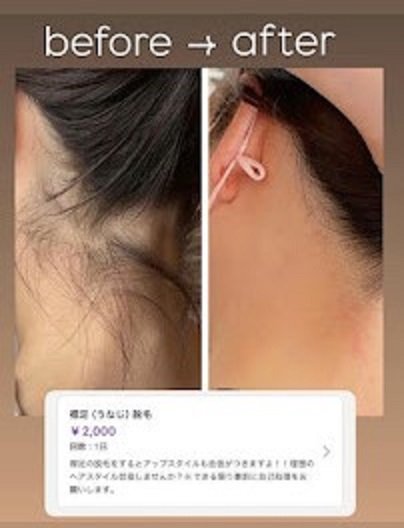 見落としがちです。 2026年4月7日 Category:未分類 これからの季節、髪を上げる時が多くなるかも・・・キレイな襟足は好印象です、あなたの魅力でもあります。 ¥2000-で脱毛しましょう!簡単にできますヨ!